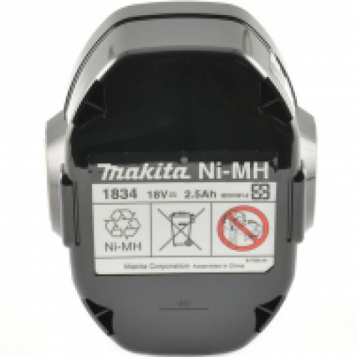 Аккумуляторная батарея Makita(Макита) 1834 тип - Ni-Mh, напряжение - 18В, емкость - 2.5 (2.6)Ач, время зарядки min/max - 9/45 мин, размеры - 95x90x110мм, индикатор уровня заряда - нет, вес - 670гр, форма - кубический