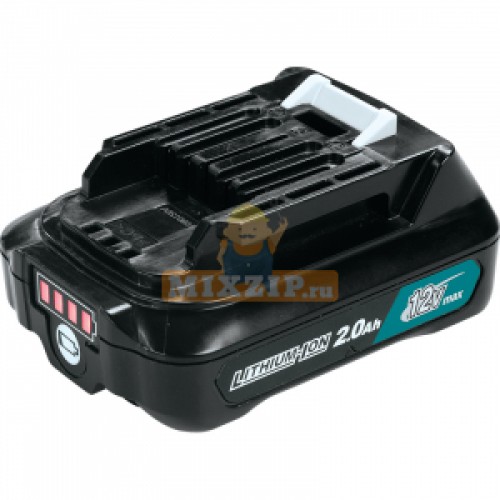 Аккумуляторная батарея Makita(Макита) BL1021B слайдер, тип - Li-Ion CXT, напряжение - 12В, емкость - 2.0Ач, мощность - 24Вт, время зарядки min/max - 25/60 мин, размеры - 37x55x85 мм, индикатор уровня заряда - да, технология MAKSTAR - да, вес - 170гр