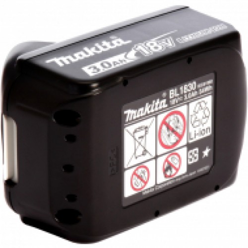 Аккумуляторная батарея Makita(Макита) BL1830B слайдер, тип - Li-Ion, напряжение - 18В, емкость - 3.0Ач, мощность - 54Вт, время зарядки min/max - 22/30 мин, размеры - 115x75x65 мм, индикатор уровня заряда - да, технология MAKSTAR - да, вес - 650гр
