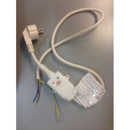 Сетевой провод с УЗО, клеммы подключения под винт, три провода, желто-зеленый, синий и коричневый. сила тока до 15 А амперный