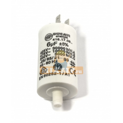 Пусковой конденсатор на 6µF. размер: Ш32x55mm. 10000h, 475V. двойные клеммы- 6,3mm и M8 гайка