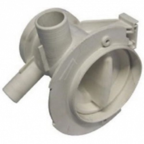 Пластиковый корпус крепиться к насосу и к корпусу машинки. К улитке крепятся сливной патрубок и сливной шланг.