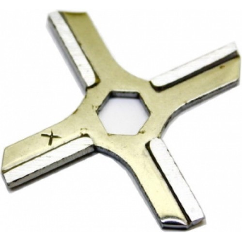 Нож к мясорубке Мулинекс (MOULINEX). посадочное место шестигранник 8 мм., общая длина 46,6 мм, толщина 2 мм. заточен заводом, материал - нержавеющая сталь.