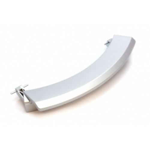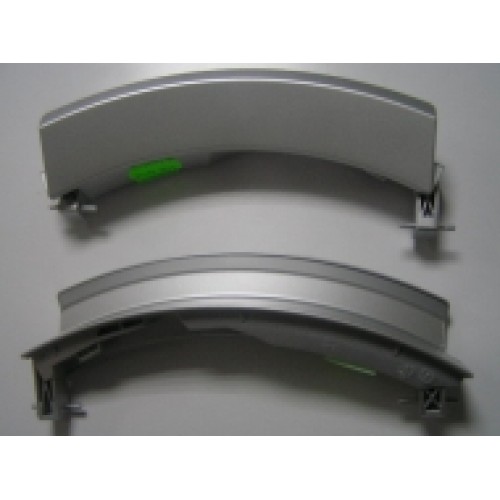 Ручка дверцы люка для стиральной машины Bosch, Siemens (Бош, Сименс), серого цвета, серебристая.
