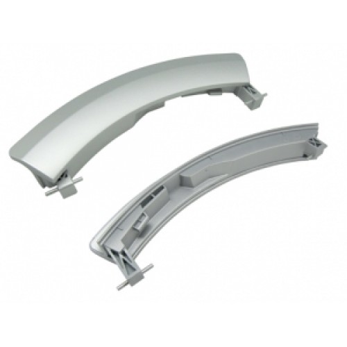 Ручка дверцы люка для стиральной машины Bosch, Siemens (Бош, Сименс), серого цвета, серебристая.
