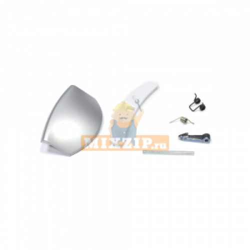 Ручка открывания дверцы стиральной машины Электролюкс Занусси АЕГ (Electrolux, Zanussi, AEG), клавиша, крючок, возвратная пружина и шток в комплекте. Серого, серебристого цвета, взаимозаменяема с белым цветом