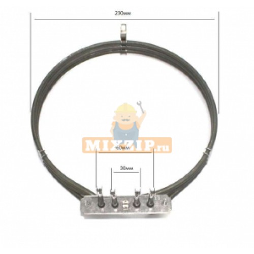 Круглый тэн вентилятора для электрического духового шкафа SMEG (СМЕГ) 3200W - ø 220 mm - фланец 100x22 mm