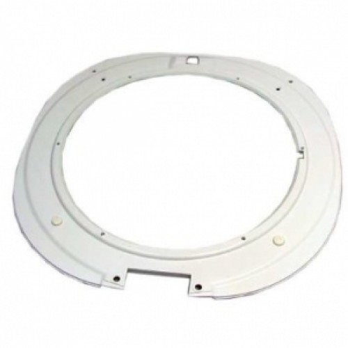 Кольцо на дверцу (люка) из пластика к стиральной машине поставляется отдельно, белого цвета, с отверстиями под саморезы (винты) и крючок (защелку), с посадочным местом под петлю (шарнир) дверцы.